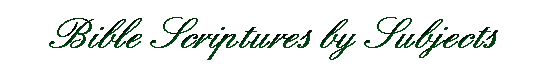 | The subjects listed here are the same as those listed on the Bible Scriptures by Subjects Main Index . This index provides you with a concise alphabetical listing of subjects for quick reference. If you don't find a subject that you are looking for listed here, please try our Bible Study Page, for more tools . May the Lord Jesus Christ bless you richly in your studies! |